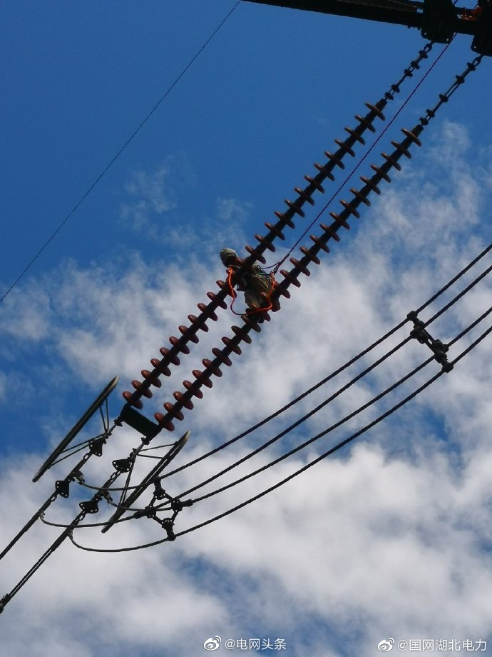 8月18日,碧空烈“焰”,室外溫度已高達37℃。為保障迎峰度夏期間三峽電力外送線路安全高效運行,國網湖北檢修公司宜昌運維分部帶電作業人員利用軟梯進入等電位,緊急消除了500千伏三江Ⅱ線54號塔中相大號側導線引流板螺栓異常發熱缺陷。他們頭頂烈日,穿梭于鐵塔銀線間,只為守護遠方的一份清涼。