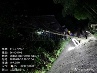 9月10日傍晚,一場不期而至的狂風暴雨吹倒了一棵大樹,倒在大路坪#2變臺區低壓線路上。國網武岡市供電公司大路坪供電所的值班人員迅速趕到現場處置倒樹,保證了客戶安全、放心用電。(劉謀雄 鄧勇)