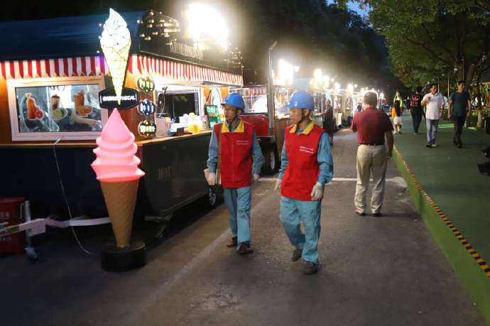 國網寧波市鄞州區供電公司來到夜貓子夜市進行用電量檢查工作