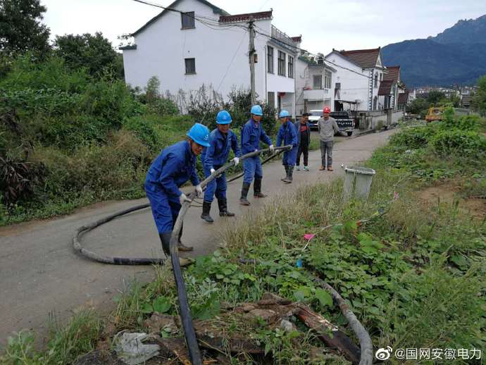 9月21日,國網池州供電公司施工人員正在搶修被水毀沖塌的九華山10千伏樣山支線梧桐08號高壓分支箱移位施工,以確保安徽九華山風景區(qū)樣山臺區(qū) “國慶、中秋”可靠供電。(王恒龍)