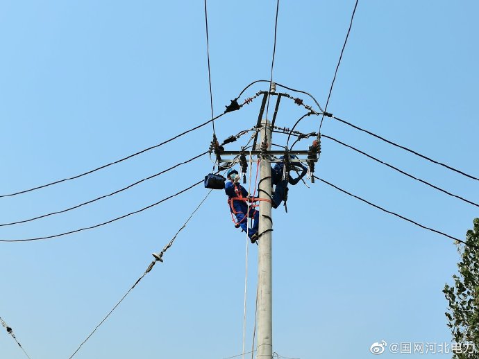 秋風瑟瑟天微涼,登塔作業施工忙。10月10日,國網南皮縣供電公司電力員工對10千伏城賓565線路進行升級改造,及時更換老化線路,消除安全隱患,提高線路供電能力,保障電網可靠穩定供應。(石昌毫??李金奪)