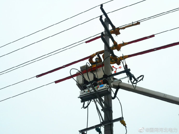 帶電接引助生產,保障電力穩供應。10月14日,國網滄州市渤海新區供電公司員工在10千伏園辛線5723東花園開展帶電接引線工作,保障區域供電。