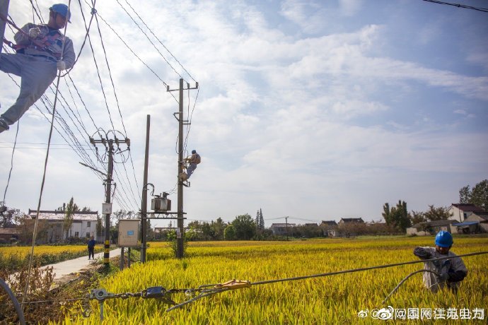 10月25日,國網泰州市姜堰區供電公司施工人員來到張甸對停電范圍內的線路進行綜合檢修,并將更換的老舊導線進行架空,助力農戶秋收準備。 ????