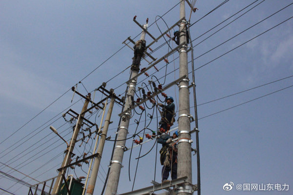 【降溫在即忙架線 改造升級迎暖冬】10月29日,在高唐縣固河大王村,國網高唐縣供電公司組織人員對村子電力設施進行升級改造。當天增容變壓器一臺,舊導線換新800余米,對全部低壓基礎設施檢查消缺,確保滿足村子冬季用電需求。 ????