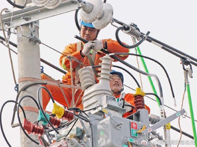 【開斷裝開關 提高供電可靠性】11月3日,國網東臺市供電公司電力施工人員在溱東鎮(zhèn)周黃村改造10千伏溱湖線,在109號桿導線開斷 ,安裝智能開關,提高溱湖線供電可靠性。 ????