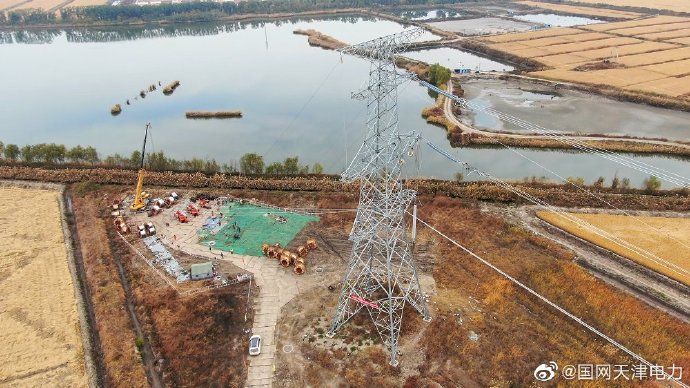 【國網天津建設公司:渠陽-蘆臺500千伏線路工程進行放線作業】