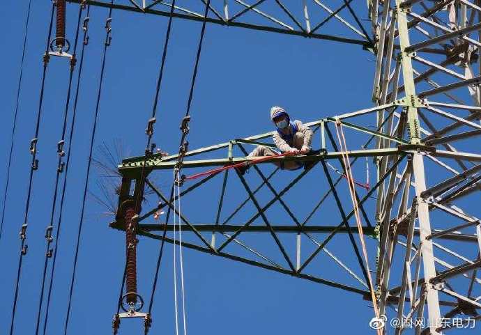 【軟梯登高秀絕活 線路運行更穩(wěn)定】11月8日,國網(wǎng)東營供電公?輸電運檢中心采用“等電位”作業(yè)方法成功消除220千伏廣安線24號塔導(dǎo)線防震錘滑跑的嚴重缺陷,確保了線路的安全運行。