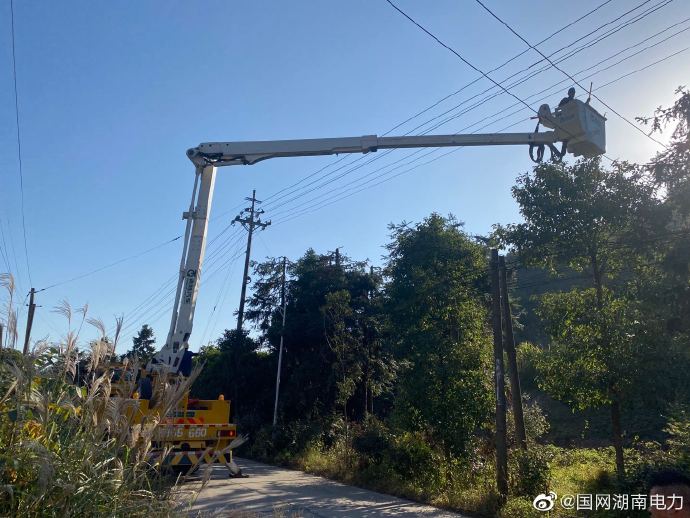 電力線路通道旁樹木生長繁茂,造成對線路設備安全距離不足,給線路可靠供電帶來很大隱患。近日,國網株洲醴陵市供電公司員工在10千伏官坪線46-49號桿附近進行帶電砍青,此舉既能消除樹竹隱患,又保障了附近居民的正常用電。(黃盼琴 吳恬茜)