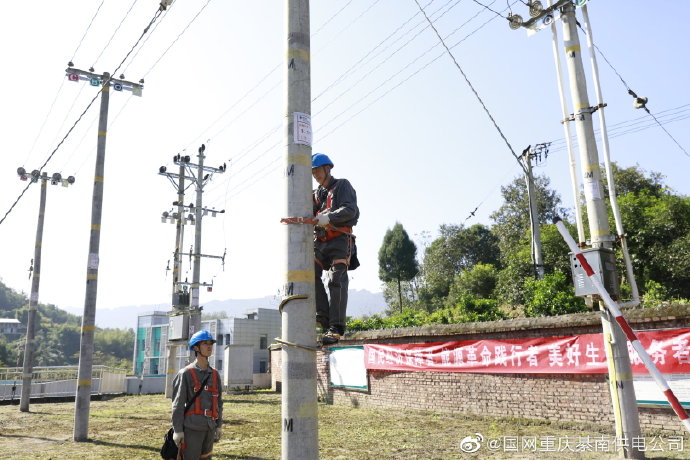【秋安秋檢】國網重慶綦南供電公司通惠供電所工作人員利用閑暇時間在實訓基地開展登桿培訓 .