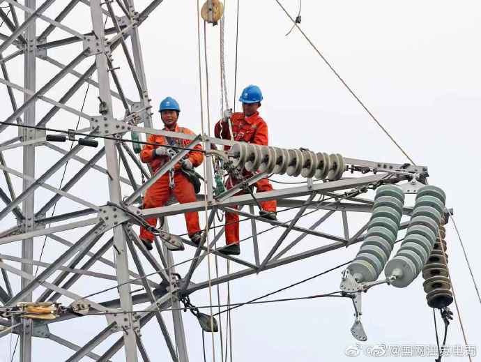 11月17日,國網鹽城供電公司電力施工人員在東臺市時堰鎮110千伏時堰變電站南側,施工架設110千伏衡時線38到39號塔線路,提高時堰變電站供電能力和可靠性,滿足時堰鎮發展用電需求。