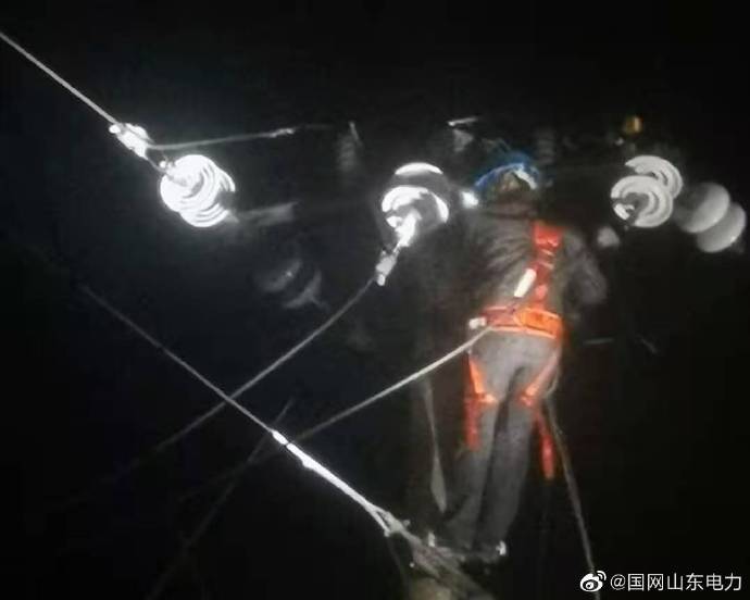 【深夜雨中搶修 保障居民用電】11月18日晚,受惡劣天氣影響,牟平境內(nèi)10千伏云溪線20-20號桿至20-24號桿之間遭雷擊斷線,國網(wǎng)煙臺市牟平區(qū)供電公司姜格莊供電所立即組織搶修人員連夜冒雨趕赴現(xiàn)場,在保障作業(yè)人員安全的前提下登桿搶修,第一時間恢復(fù)送電。 ????
