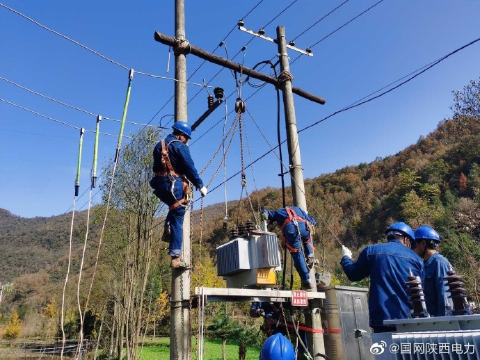 11月24日,國網略陽縣供電公司 冒著嚴寒施工作業,更換過負荷配變、更換粗線徑導線、增加電源布點,提升大負荷線路設備承載力,保障冬季用電高峰的可靠供電。(漢中略陽:魏璇) ????