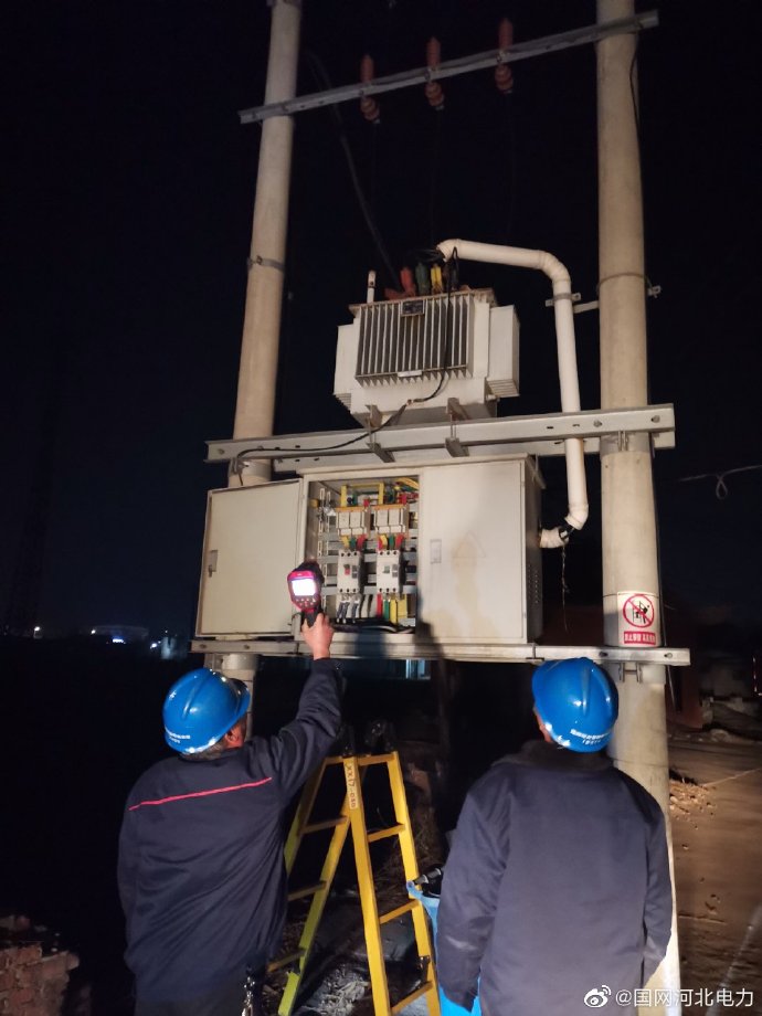 氣溫驟降,負(fù)荷長(zhǎng),電力小哥巡視保供電。隨著氣溫不斷降低,“煤改電”用戶電暖氣、空調(diào)等設(shè)備負(fù)荷快速增長(zhǎng)。12月13日夜,國網(wǎng)邢臺(tái)市環(huán)城供電公司羊范供電所員工在夜間電力負(fù)荷高峰期對(duì)變壓器、線路進(jìn)行巡視,消除故障隱患,保障用戶溫暖過冬。王維康 焦計(jì)龍) ????