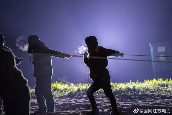 【不畏嚴寒 夜跨高鐵】12月17日凌晨時分,??國網(wǎng)江蘇工程咨詢公司組織施工單位正在黃集—三堡500千伏線路工程進行跨越鄭徐高鐵施工作業(yè)。近日寒潮來襲,夜間施工戶外最低溫度降至近零下十度,電力工人克服嚴寒,堅守崗位,保證線路工程及時安全地跨越高鐵線路。 ????
