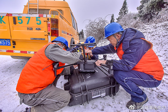【寒潮來襲 無人機(jī)助電網(wǎng)人戰(zhàn)冰雪】12月15日,涪陵電力公司輸電運(yùn)檢二班的巡線工人踏上了輸電線路特巡之路,在110千伏濤中線36號桿塔,輸電檢修班將進(jìn)行一次雪中無人機(jī)巡線??碧胶梦恢?,取出無人機(jī),“機(jī)長”黃東小心地檢視機(jī)器各部位,檢查遙控器及電量情況。確定飛行路線后,無人機(jī)一陣轟鳴,悠悠地飛了起來。沿著濤中線,無人機(jī)越飛越高,越飛越遠(yuǎn)。黃東不時(shí)地微調(diào)飛行高度和位置,使機(jī)器懸停在36號桿塔上方。“36號桿塔電桿拉線上有覆冰,需要前往現(xiàn)場處理。”黃東注視著屏幕說道。連日來,受持續(xù)雨雪冰凍天氣影響,重慶涪陵武陵山區(qū)部分輸電線路出現(xiàn)了覆冰情況,給電網(wǎng)安全造成了較大壓力。冰雪天氣利用無人機(jī)巡檢,可以近距離查看導(dǎo)線覆冰厚度,金具是否出現(xiàn)磨損碰撞,實(shí)時(shí)傳回影像,影像存儲導(dǎo)出后還可繼續(xù)研究,為線路覆冰情況提供第一手參考資料。