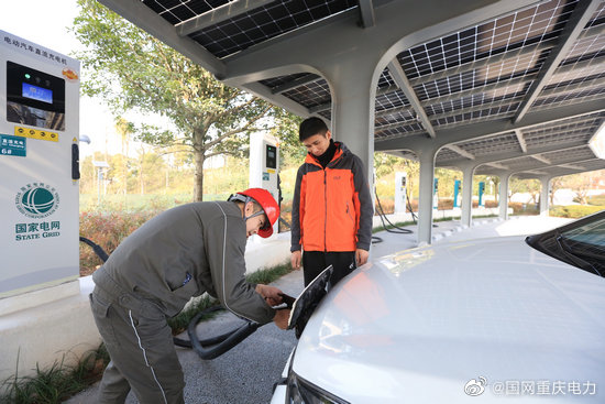 【光伏充電站投運 新能源服務“生態(tài)城”】1月19日,在悅來美術(shù)館門口,14個電動汽車充電樁依水而立,光伏發(fā)電板正在汲取陽光的能量,轉(zhuǎn)化為源源不斷的電能傳輸給充電樁,這標志著國網(wǎng)重慶市北供電公司首座光伏充電站正式上線。悅來美術(shù)館充電站結(jié)合光伏發(fā)電技術(shù),實現(xiàn)光伏發(fā)電與充電‘一體化’應用。光伏系統(tǒng)所發(fā)電能優(yōu)先提供充電樁使用,富余電量可通過充電樁公用變壓器倒送至公共電網(wǎng)完成消納,實現(xiàn)自發(fā)自用、余電上網(wǎng),提高電網(wǎng)經(jīng)濟效益。值得一提的是,該光伏充電站是悅來美術(shù)館重要配套設施,整體采用鋼架結(jié)構(gòu)玻璃流線型外觀設計,使其融入到悅來美術(shù)館的整體建筑風格中,是智慧用能與前沿藝術(shù)的完美融合。