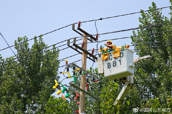 【冒高溫帶電接火 助力小微企業發展】8月5日,國網淄博供電公司?工作人員在10千伏扈泉1線29號桿采用帶電作業方式為萌水鎮某磨料磨具廠新增250千伏安變壓器帶電接火,工作人員經過40分鐘的緊張工作,順利完成帶電作業任務,滿足了企業用電需求。