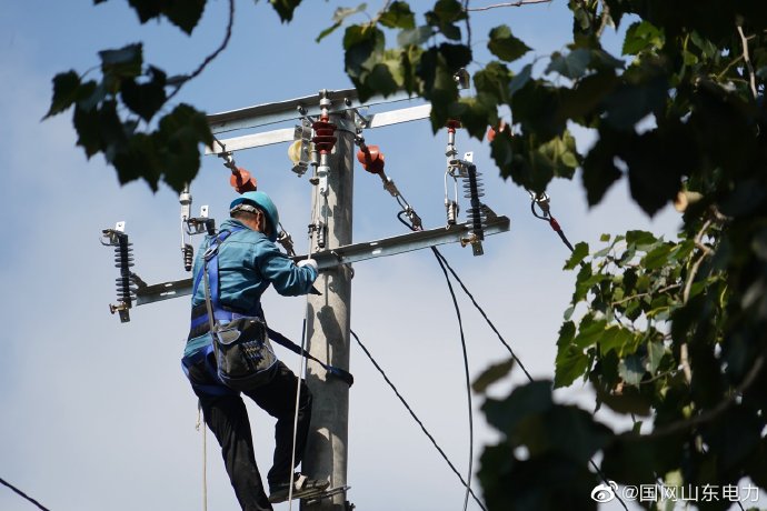 【不懼高溫遷改線路 安全可靠保供電】8月10日,國網平度市供電公司?施工人員在在10千伏門農線化工支線11號桿進行線路遷改工作,工作人員克服高溫天氣,經過兩個小時的高空作業,解決了線路本體老化嚴重,線路弧垂較低等問題,進一步提高了線路運行的穩定性和供電可靠性。 ????