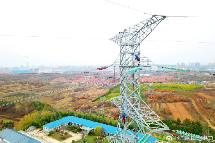 【消除線路隱患 保障供電安全】11月25日,在威海市豐山,國(guó)網(wǎng)威海供電公司?輸電運(yùn)檢人員對(duì)跨越山林的220千伏威昆線進(jìn)行檢修,修復(fù)破損的絕緣子,為處于山谷風(fēng)口處的導(dǎo)線加裝防舞動(dòng)間隔棒,進(jìn)一步提升線路運(yùn)行穩(wěn)定性,確保安全、可靠供電。 ????