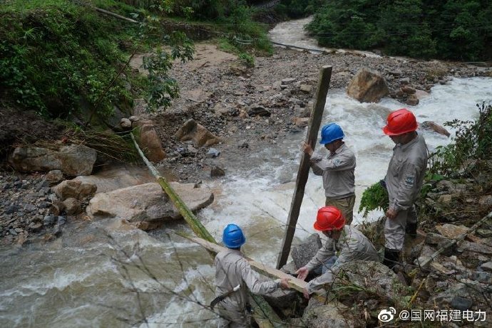 6月22日,因受強降雨導致福建省邵武市張厝鄉祝嶺村路段爆發山洪,致使該路段道路及供電被中斷。接到消息后邵武市供電公司的工作人員第一時間組織4部車、30余人的搶修隊伍前往受災路段,由于滑坡道路阻斷,搶修人員只能徒步前往搶修地點,為了方便人員和設備通過,他們還架起一座簡易的橋。面對暴雨的突擊,供電蜀黍早已提前部署好,風雨再大,有他們在前方護航。