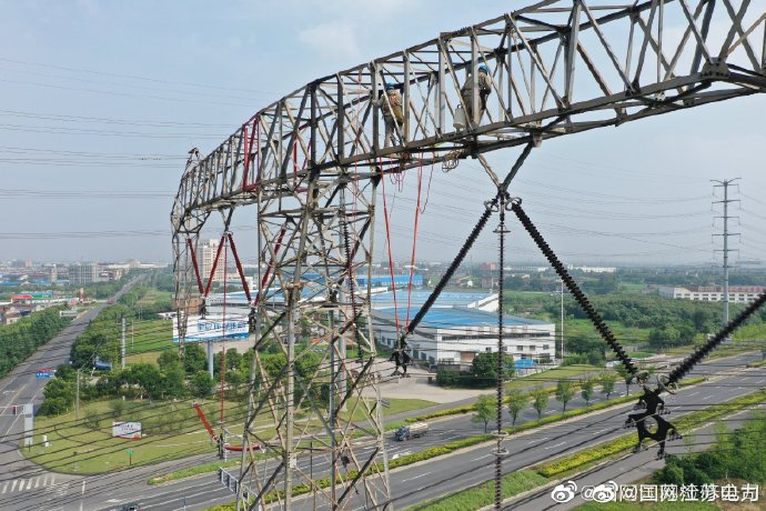 6月28日,國網江蘇檢修公司輸電檢修中心高壓帶電作業人員登上全國首條500千伏緊湊型雙回路陽珠線。他們運用自主研發的多功能操作桿更換V型絕緣子串,并取得圓滿成功,填補了500千伏同塔雙回緊湊型輸電線路帶電作業的空白。 ????