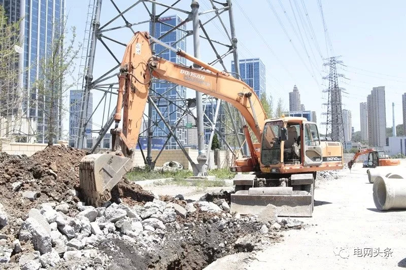 在會展中心巡線現場,政府執法人員發現,在220千伏水雁線34號塔下方,某施工隊利用挖掘機、吊車敷設下水管道,高聳的挖掘臂像“巨人”一樣張開大手,距離上方的電力線路僅有幾米,非常危險。執法人員立即叫停違章行為,并立即約談該項目負責人。