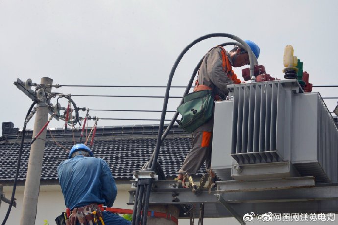 【增容變壓器 居民用電更安心】7月8日,國網太倉市供電公司組織電力施工人員在鹿河鎮玉影12號臺片將原來315千伏安變壓器增容至400千伏安,確保迎峰度夏期間周邊居民用電更安心、更可靠。