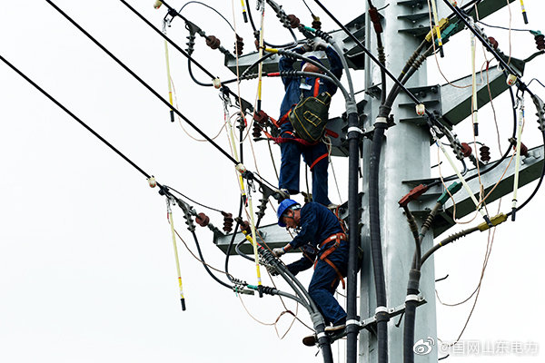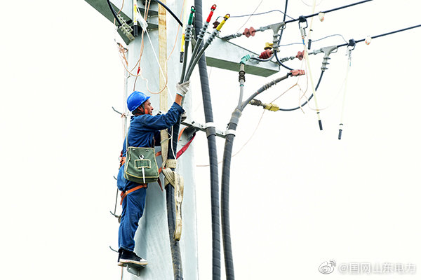 【桿頂帶雨搶修 保障企業用電】7月10日,國網濟南市濟陽區供電公司員工對,更換出現10千伏湖王線某客戶支線進行緊急消缺故障的電纜接頭。搶修隊員們被猝不及防的陣雨淋個濕透,帶雨作業三個小時,順利完成故障電纜頭的更換工作,保障了企業的正常用電。