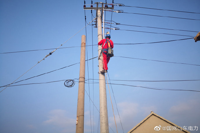 【登桿消除缺陷 村民用電可靠】7月14日,國網利津縣供電公司組織精干技術人員及時消除利津縣汀羅鎮金盆村配電線路設備的缺陷,保障居民夏季安全可靠用電。 ????