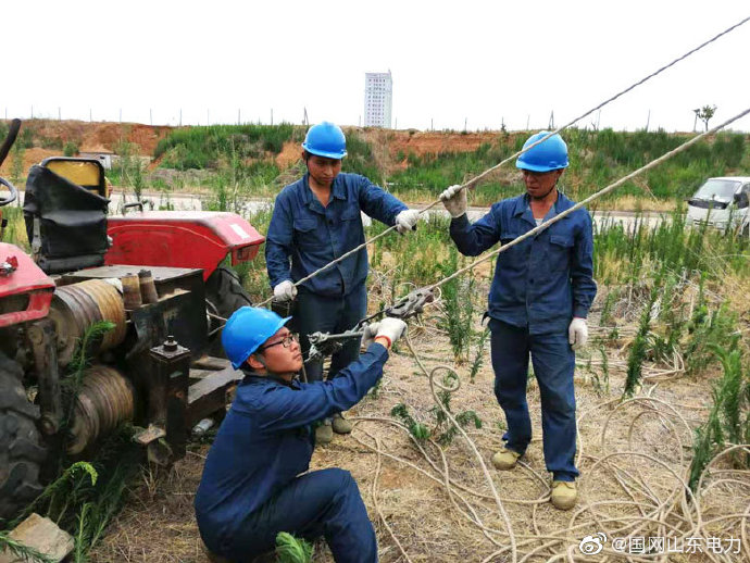 【揮汗架線不言熱 千家萬戶送清涼】7月13日,國網臨朐縣供電公司員工冒著高溫炎熱進行10千伏龍陽線架設。施工人員不懼溫高濕熱、烈日暴曬、鐵件燙手,全力以赴加快施工,組立鋼管桿13基,埋設水泥桿14基,架設導線1.4公里。通過線路建設提高了線路安全運行水平,保障了轄區可靠優質供電。 ????