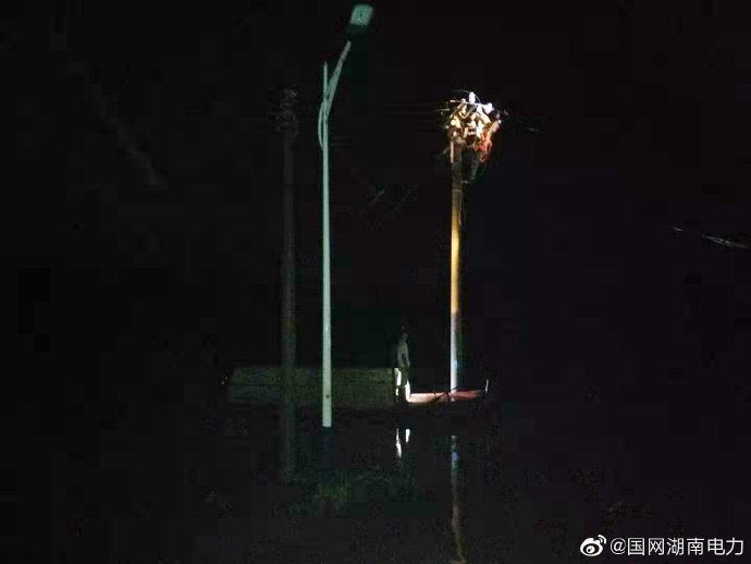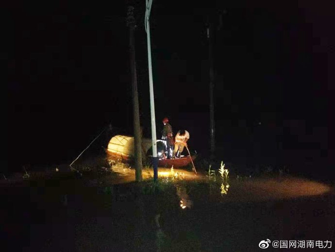 近日,祁陽水位繼續攀升,一直蹲守低洼現場,防洪水上漲的國網祁陽縣供電公司七里橋供電所發現寶塔山變電站10千伏寶民線東江村變臺區一條沙場線路會被洪水浸沒。為不影響村里其他居民用電,該所于當晚立即組織人員開展斷電行動,22時30分,搶修隊伍到達東江村變臺區,該村電桿已被水浸,電力人員借來小舟,扒舟過河,登上10千伏寶民線D02#桿,斷開水浸沙場線路,確保了該村其他居民安全用電。