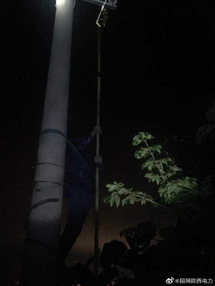 【風停了,雨住了,燈又亮起來了】7月22日,風雨過后,借著手電筒的亮光,國網安康供電公司高新支公司搶修小哥,用長長的絕緣桿合上了架在桿頂的10千伏雙聯支線絲具,恢復故障線路供電。靜悄悄的夜里,燈亮了,搶修小哥笑了。