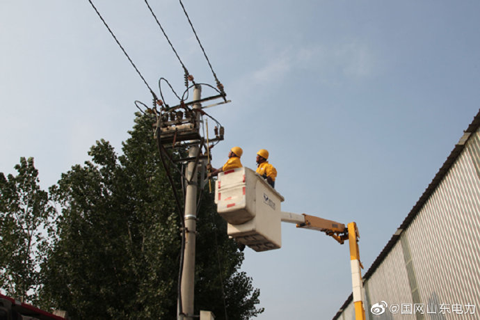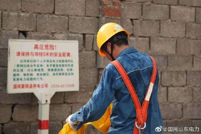 【帶電接火保企業生產用電】7月22日,國網蒙陰縣供電公司帶電作業班在10千伏周溝線24號桿開展帶電接火作業,為某建筑工程有限公司新上250千伏安專變帶電T接引流線。經過一個多小時的緊張作業,工作人員順利完成全部作業任務。當他們爬下線桿的時候,由于高溫悶熱,身上的衣物已經被汗水浸透。 ????