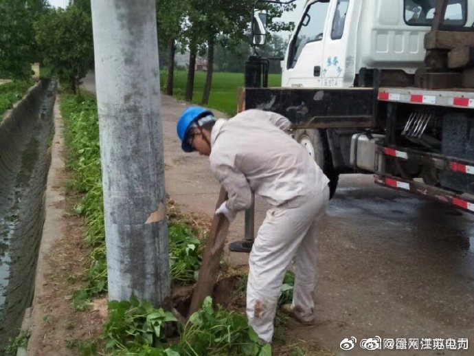【暴雨沖歪電桿 供電緊急扶正】7月23日下午,國網(wǎng)沛縣供電公司胡寨供電所組織人員對10KV105線路101、102#被暴雨沖斜的電桿進(jìn)行扶正,保障該條線路2500余戶用戶正常供電。