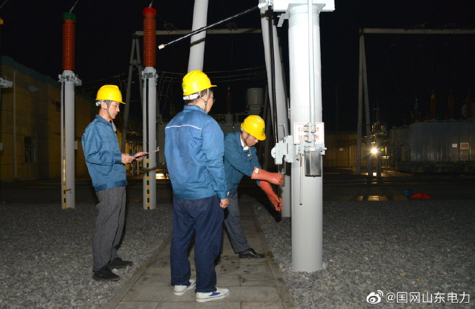 【夜巡變電設備 確保安全運行】7月24日晚,中伏的高溫桑拿天氣,帶動電網用電負荷持續高位運行。國網濟南市歷城區供電公司變電運維人員,在110千伏仲宮變電站密切關注著變電設備的運行狀況,將工作重心轉移到強化設備的夜巡、特巡、節點測溫和隱患排查上來,確保電網設備安全運行。