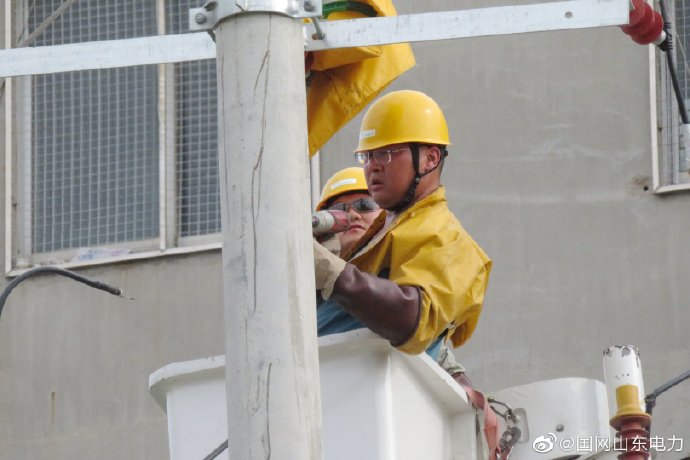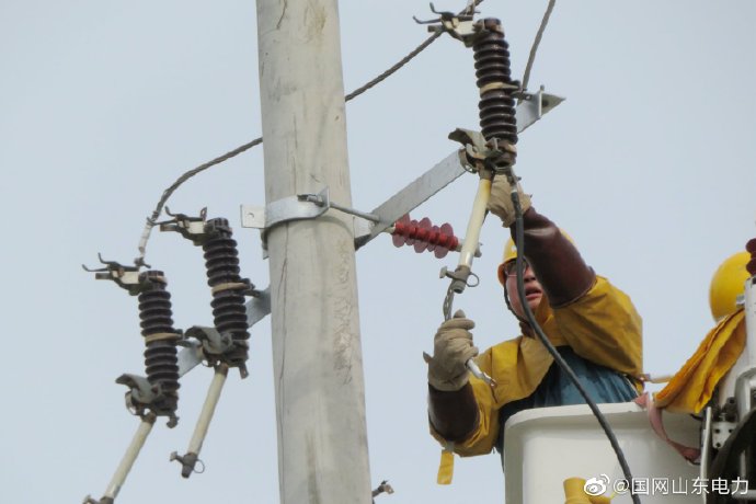 【我甘愿接受烈日的炙烤 只為守護你的夏天】7月25日中午1點半,國網招遠市供電公司帶電作業人員在10多米高的空中為錦繡江南小區更換跌落式熔斷器,幾小時暴曬的絕緣斗臂和水泥電桿熱到發燙,作業人員黝黑的臉上不停流淌著汗水,最大限度減少了停電時間,為市民清涼度夏保駕護航。 ????