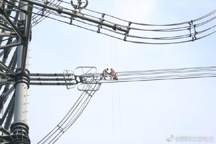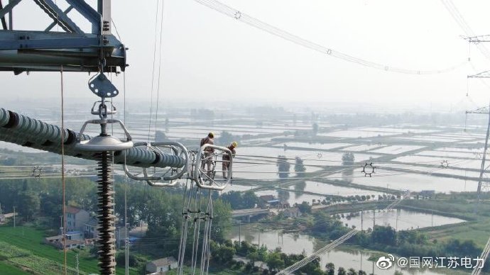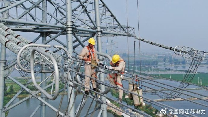 【戰高溫 裝設備 保投運】7月26日,江蘇省送變電有限公司特高壓運檢分公司的工作人員克服高溫天氣影響,在1000千伏泰吳線上安裝輸電線路分布式故障診斷裝置,該裝置在輸電線路發生故障后能快速、準確地找到故障點并正確判斷出故障類型,為長江GIL管廊調試和1000千伏泰吳線投運保駕護航 ????。
