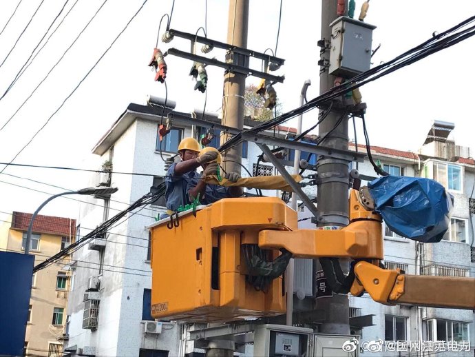 【不停電作業安裝設備】7月30日,國網揚州供電公司帶電作業人員在高溫天氣下不停電安裝TTU,保證用戶正常用電。 ????