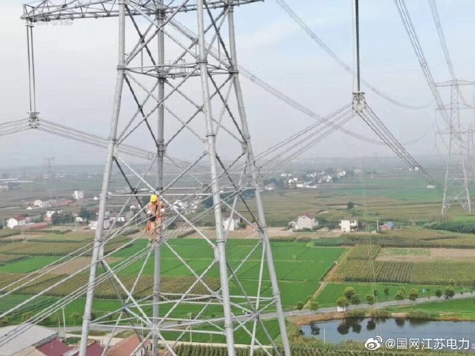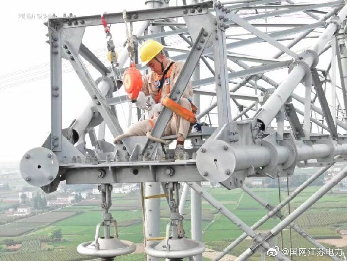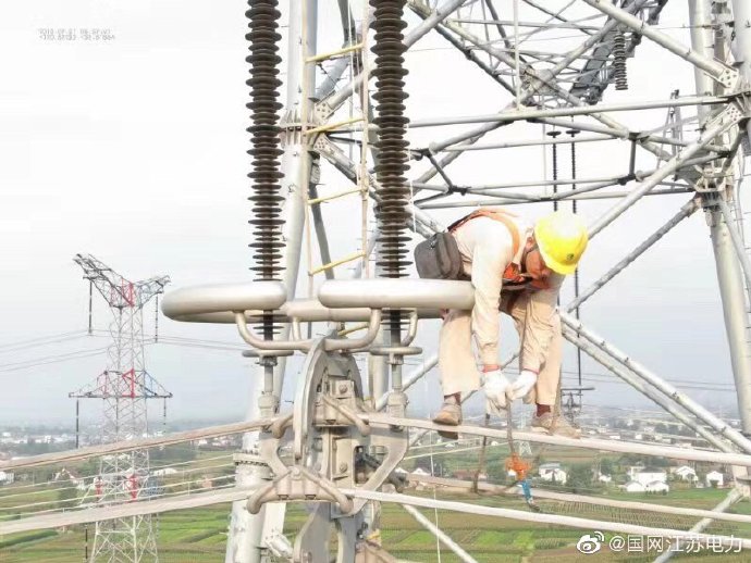 【無懼高溫 奮戰一線】7月31日,江蘇省送變電有限公司特高壓運檢分公司高空人員正在對1000千伏泰吳線所有塔身及間隔棒上的鳥窩進行全面清除,以百分百健康的狀態迎接8月份的線路參數測試試驗。由于時間緊、任務重,我們高空人員“扛著”高溫,爭分奪秒做好消缺工作,與太陽賽跑、與時間賽跑,確保泰吳線“無缺陷”投運目標的實現。