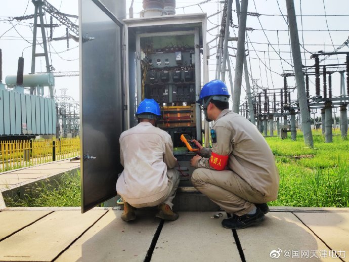 7月31日,國網天津檢修公司二次檢修中心王耘與工程施工人員在上古林220千伏變電站檢查端子箱封堵情況與加熱驅潮裝置運行工況。 ????