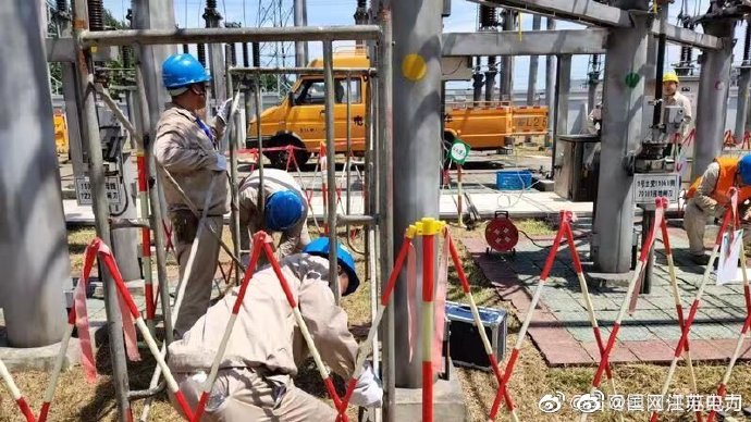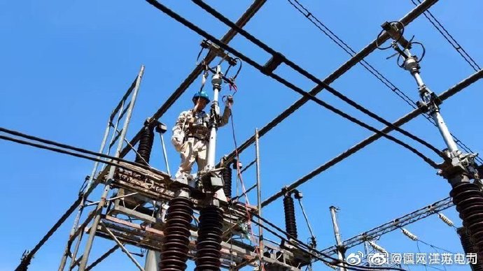 【烈日下忙消缺】8月1日,國網鎮江供電公司變電運維室工作人員在220千伏金鳳變對110千伏母線刀閘進行消缺工作。為保障設備運行可靠性,工作人員在烈日下忙碌了,確保迎峰度夏期間電網的可靠運行。 ????