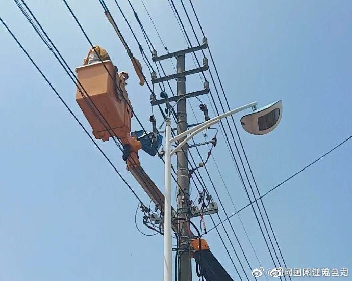 【帶電檢修保障居民用電】8月6日,國(guó)網(wǎng)揚(yáng)州供電公司配電運(yùn)檢室?guī)щ娮鳂I(yè)人員帶電檢修線路,保證用戶可靠用電。 ????