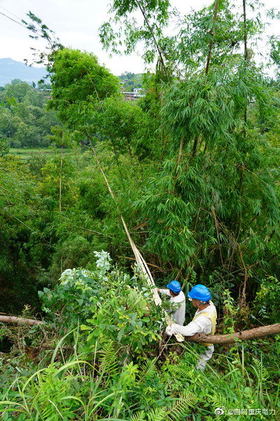 【暴風(fēng)雨后緊急搶修快速復(fù)電】8月2日傍晚,萬州區(qū)分水鎮(zhèn)突遭暴風(fēng)大雨襲擊,持續(xù)90多分鐘的暴風(fēng)雨導(dǎo)致1條10千伏線路停運(yùn),32個臺區(qū)停電。災(zāi)情發(fā)生后,故障報修電話不斷。萬州供電公司第一時間集結(jié)搶修力量,14個搶修小組奔赴多個受災(zāi)現(xiàn)場,展開搶險救災(zāi)工作。 巨興村是受災(zāi)最嚴(yán)重的地方之一,受局部龍卷風(fēng)襲擊,多處數(shù)竹折斷損壞電力線路。中屋1號公變附近一條220伏入戶線被多根竹子壓垮,由于故障點位于山崖邊,搶修十分不易。搶修人員經(jīng)過多方勘查確定搶修方案,做好安全措施,多次上坡下坎,將竹子套住一根根砍斷再拖下電線,經(jīng)過50分鐘的努力,終于消除故障。大興水庫是出動搶修人員對多的地方。金獅支線16-17號桿的導(dǎo)線被倒下的大樹壓斷,掉落水中。由于跨域水庫,恢復(fù)送電施工難度大、需要人力多。搶修人員齊心協(xié)力將200多米的舊導(dǎo)線從水中拉回,然后乘坐皮劃艇在水上施放新導(dǎo)線。3日上午10時30分,新導(dǎo)線安裝完畢,該處故障順利消除,送電成功。截至3日晚6時,所有故障搶修完畢,1600戶居民用電全部恢復(fù)。