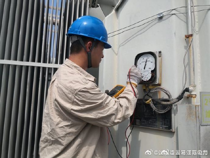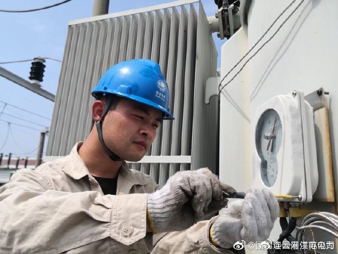 【幫助“高燒”設備“退燒”】8月8日,國網灌南縣供電公司運維站人員正頂著熱浪,對油溫異常告警的35千伏百祿變電站主變進行處理,更換油溫過高的輔助接點,保障設備安全穩定運行。 ????