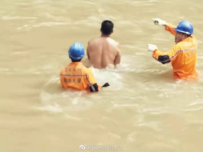 雷波縣供電公司員工在西寧鎮銀廠溝村,頂著炎炎烈搶修10千伏中銀線,加班加點挑燈夜戰,村民紛紛加入搶險救災,主動幫忙搬運搶修物資,拉導線,正能量在搶修中傳遞。 ????