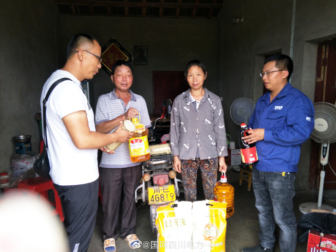 8月13日,國網瀘州供電公司瀘縣分公司員工為結對幫扶的瀘縣喻寺鎮齊心村8戶建檔立卡貧困戶送去“愛心羊羔”,落實“養殖扶貧”的路子。并向貧困戶送去米、面、油等生活必需品。