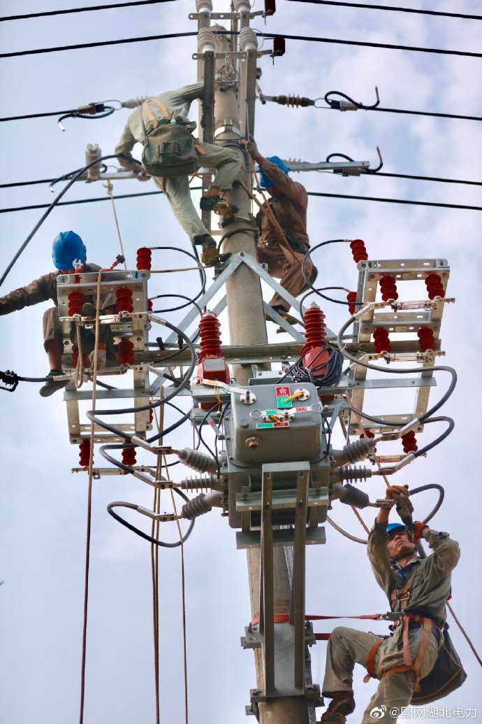 【戰(zhàn)高溫裝開(kāi)關(guān) 保供電送清涼】8月15日,國(guó)網(wǎng)鄂州供電公司員工在花湖開(kāi)發(fā)區(qū)10千伏胄山線26號(hào)桿安裝配網(wǎng)自動(dòng)化開(kāi)關(guān),實(shí)現(xiàn)實(shí)時(shí)檢測(cè)線路電氣參數(shù),加快線路故障隔離速度,減小故障停電范圍,保障市民可靠用電、清涼度夏。