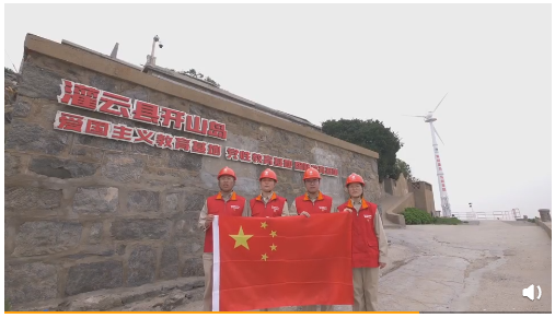 【國旗打卡第二十八站——時代楷模王繼才堅守32年的開山島】國網(wǎng)江蘇電力開山島共產(chǎn)黨員服務隊員在島嶼泛在電力物聯(lián)網(wǎng)典范、時代楷模王繼才堅守32年的開山島為祖國慶生。歷時6個月,開山島智能微電網(wǎng)及海水淡化系統(tǒng)于6月18日正式建成投運,每年可提供約15萬千瓦時電能、3600余噸淡水,徹底解決開山島缺電少水難題。