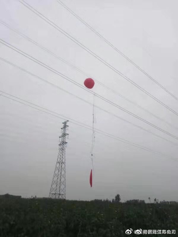 【深夜清除“空中來客”】8月19日19時15分,國網宿遷沭陽縣供電公司屬地護線員發現華沖鎮境內的220千伏萬穆4E24線40號塔C相導線懸掛著氫氣球。通過逐級匯報、并將輸電線路由運行轉為熱備用后,運檢人員迅速帶上激光炮趕往現場。于21時22分,成功將氫氣球擊球,保障了輸電線路安全穩定運行。
