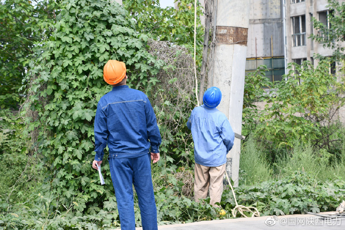 【西安:服務拆遷群眾用電】8月20日,國網西安市臨潼區供電公司城西營配班對臨潼行者街辦白廟村拆遷群眾架設臨時線路300余米,新立桿1基,及時保證該區域拆遷群眾的用電。
